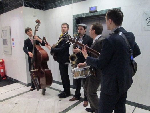 in style, we were greeted in the lobby by a band which triumphantly followed